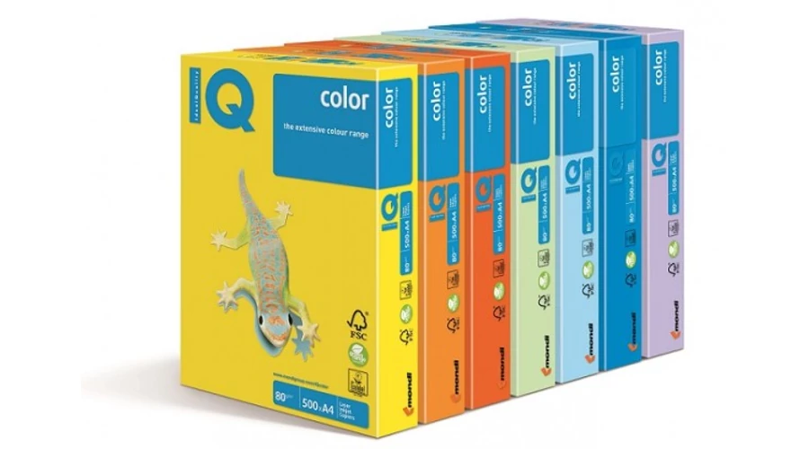 Sokoldalúan alkalmazható, magas minőségű, anyagában színezett IQ Color másolópapír. Kétoldalas másolásra és nyomtatásra is alkalmas, felhasználható tintasugaras- és lézernyomtatókba, másológépekbe. FSC, EU Ecolabel és Green Range tanusítvány. Kiszerelés: 500 ív/csomag; 5 csomag/doboz.